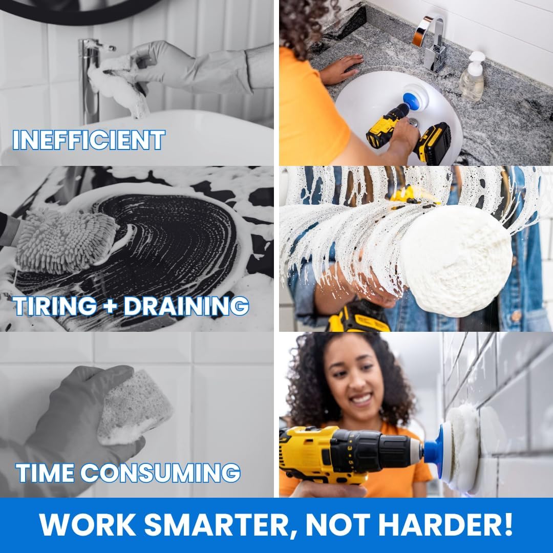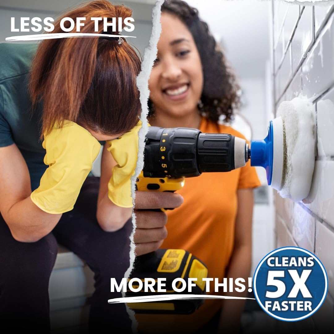 Clean 5X Faster: Use the power of your drill to clean your bathroom faster, easier and more effectively (Cordless Drill not Included).