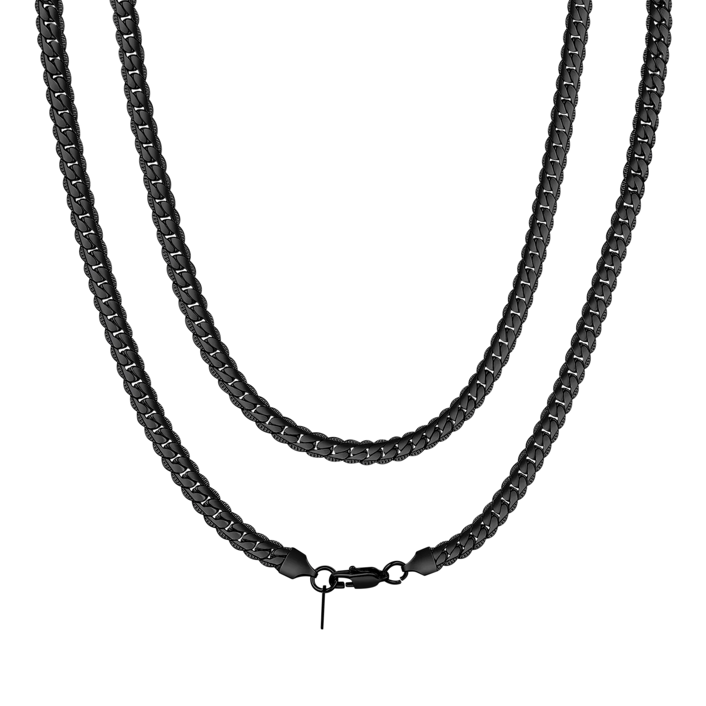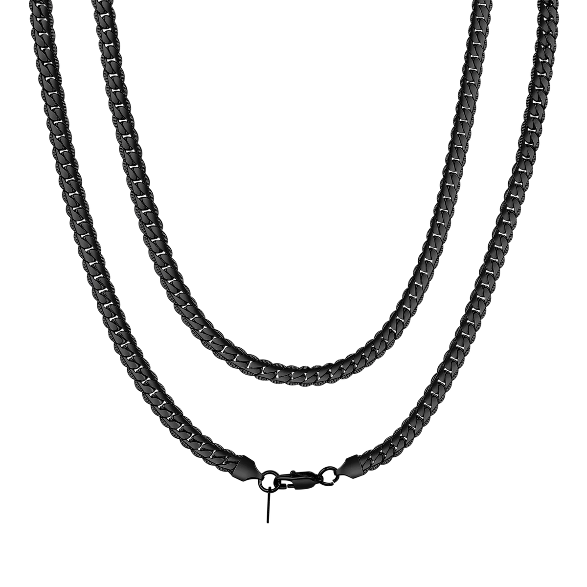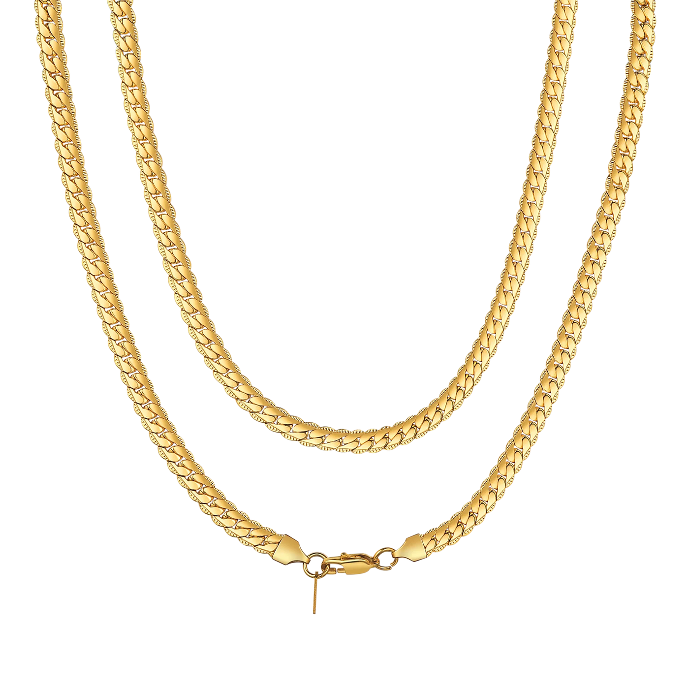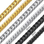 Stainless Steel Flat Chunky Snake Cuban Chain Necklaces shine in bold gold and black, available in 6mm and 8mm widths and lengths from 18 to 30 inches. Crafted from 100% solid stainless steel with 18K real gold plating, these chains are eco-friendly, nickel-free, lead-free, hypoallergenic, and gentle on your skin. The sturdy snake chain features a smooth finish for all-day comfort and an upgraded lobster clasp for easy, secure wear. Whether worn alone, with a pendant, or layered with flashier pieces, this minimalist necklace adds a sleek, confident edge to any outfit.