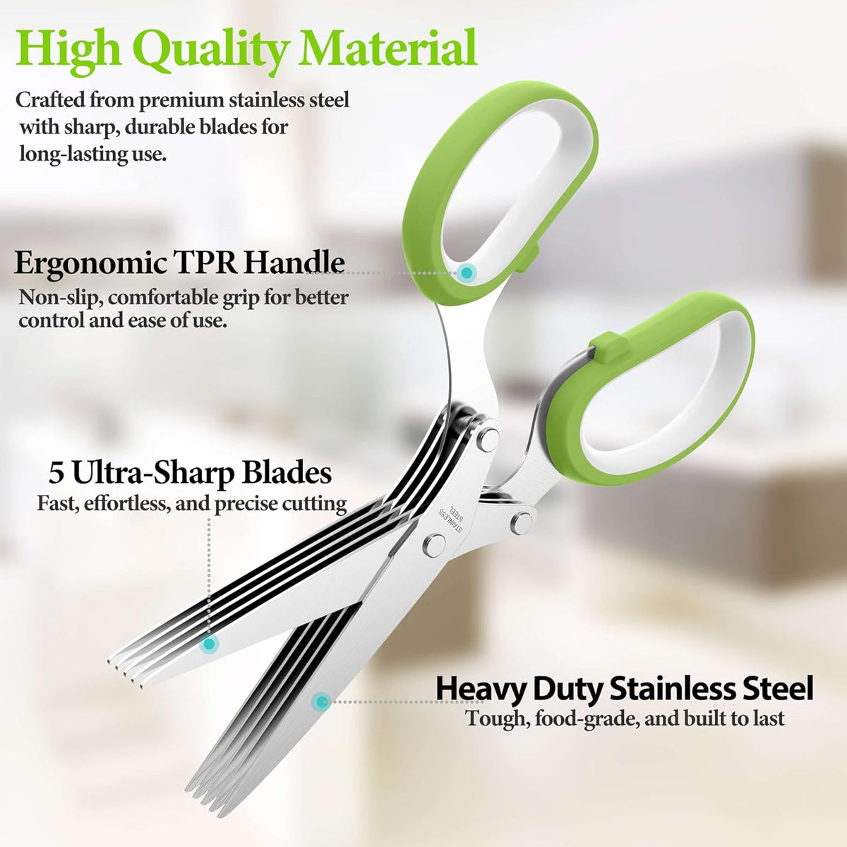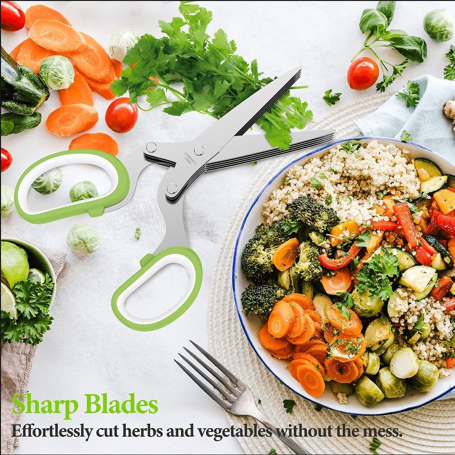 EFFORTLESS HERB CUTTING – This 5-blade herb scissors is designed for quick and uniform chopping, making it perfect for basil, cilantro, parsley, mint, rosemary, thyme, chives, dill, and more. A must-have for home kitchens, herb gardens, and culinary enthusiasts.