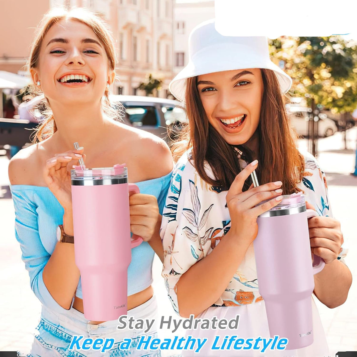 【PERFECT GIFT FOR YOUR FAMILY AND FRIENDS】: If you are looking for the perfect birthday or holiday gift, don't miss this 40 oz tumbler with handle. This insulated iced coffee cup for sports, travel, road trips, barbecues, camping, swimming, parties, driving and more.It can be a surprise gift for your family, friends, teachers, colleagues, and sisters.
