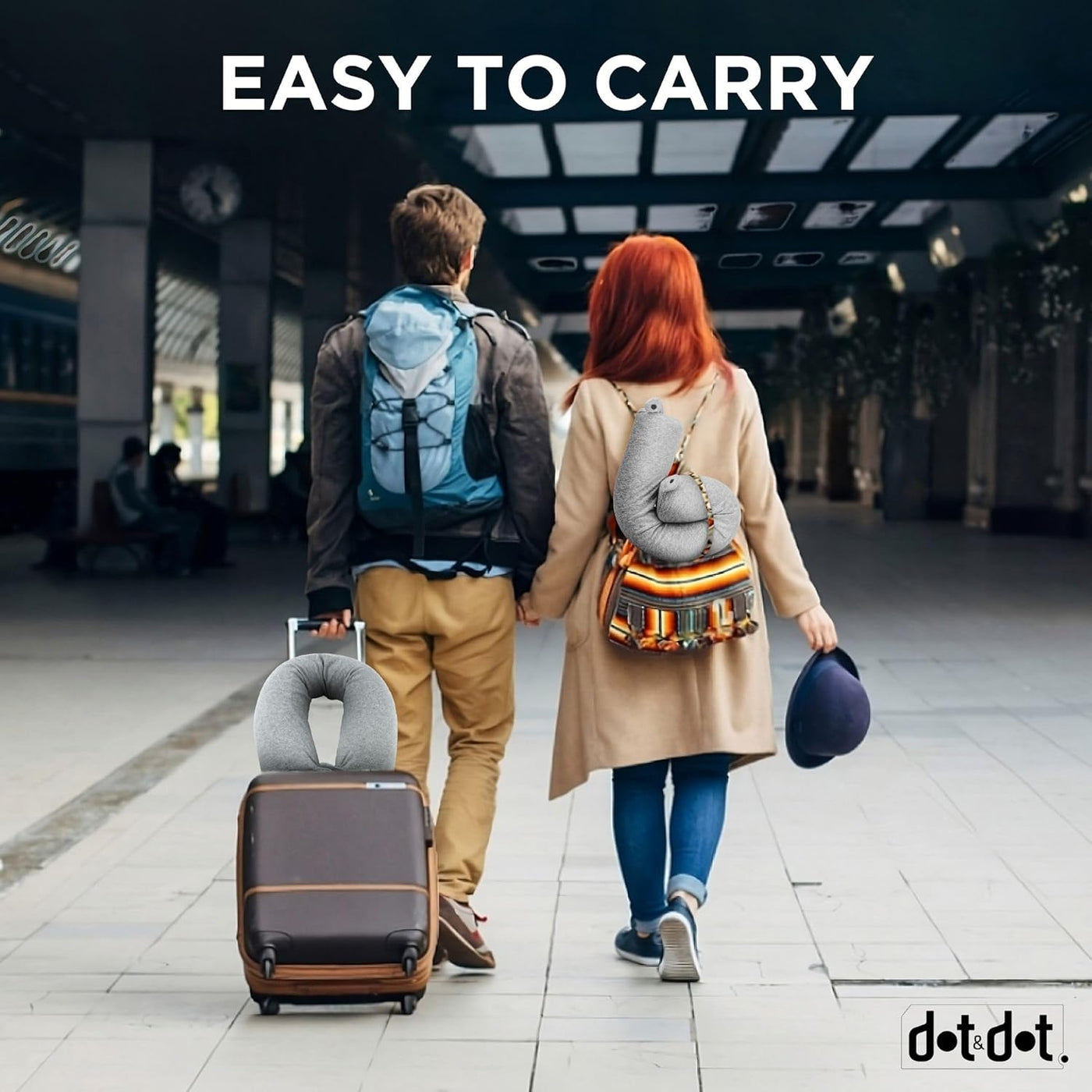Equipped with a convenient snap closure to easily attach to your carry-on luggage or backpack. Secure it around your neck or headrest for hands-free comfort on the go.