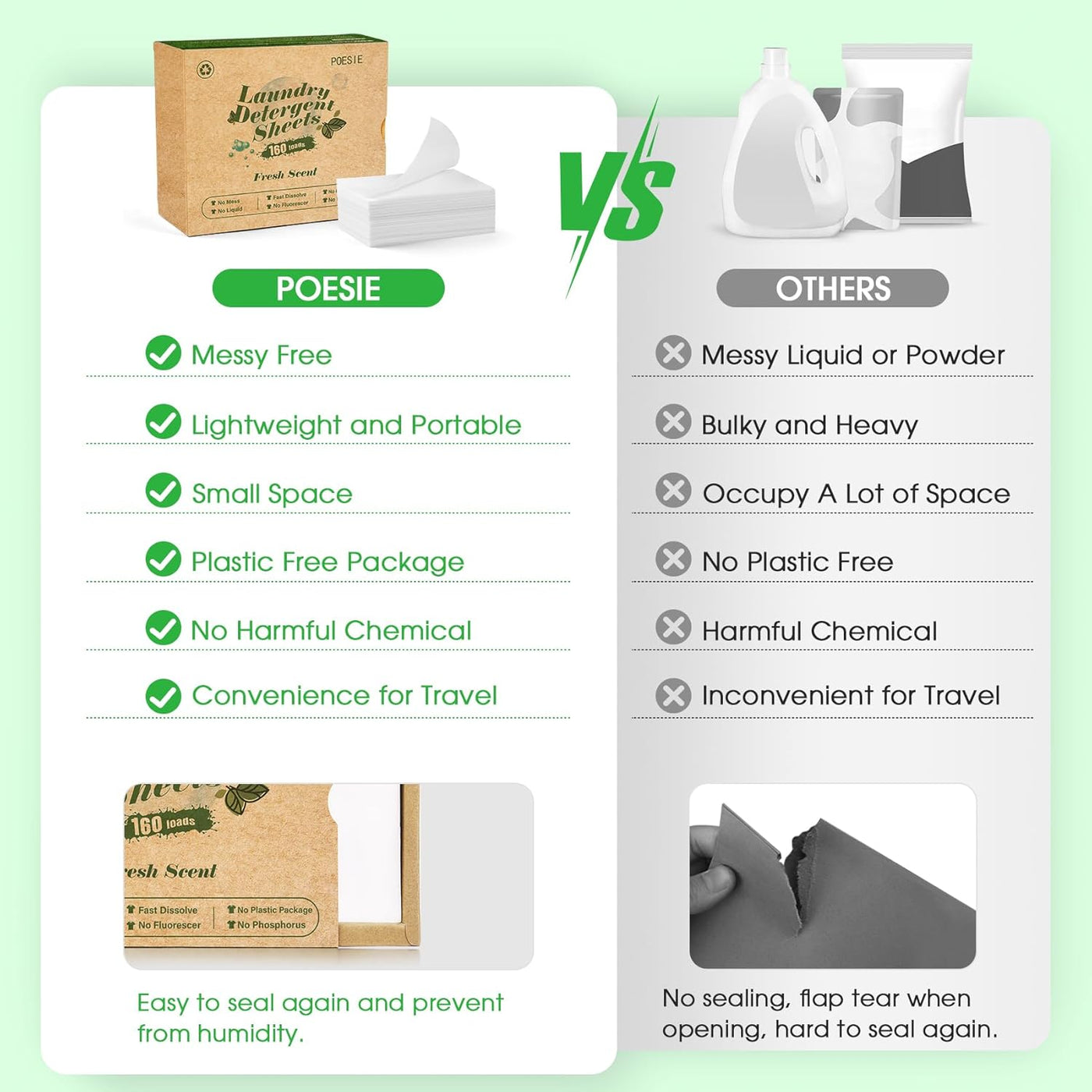 160 Pre-Measured Sheets: Enough for 160 small loads or 80 large loads.