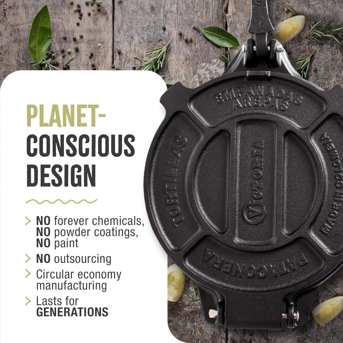 A LEGACY OF TRADITION: Since 1939, Victoria has crafted high-quality cast iron cookware in our own factories in Colombia. Our circular economy manufacturing process cuts down on waste while producing earth-conscious products that stand the test of time.