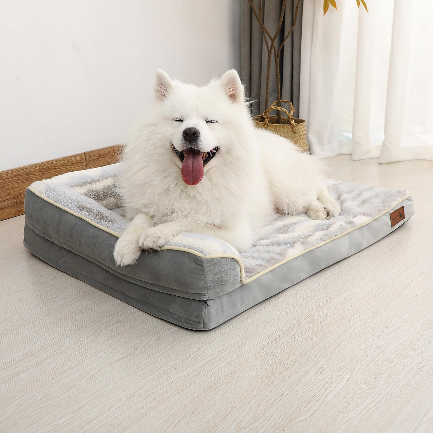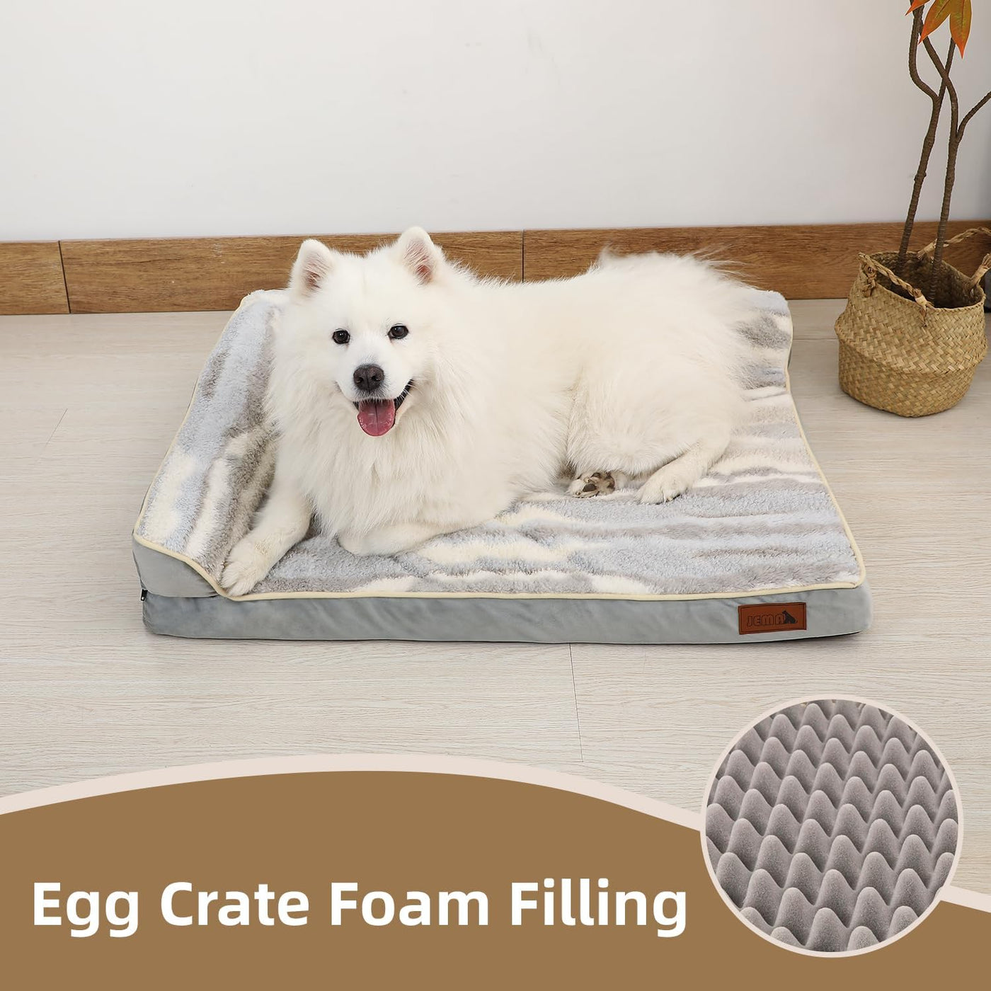 SOFT SURFACE & WATERPROOF: Our large dog beds boast a plush, high-quality fluff surface that's soft to the touch, non-pilling, and gentle on your dog's skin and paws. A built-in waterproof layer shields the egg foam from moisture, keeping your pet's bed dry and comfortable.