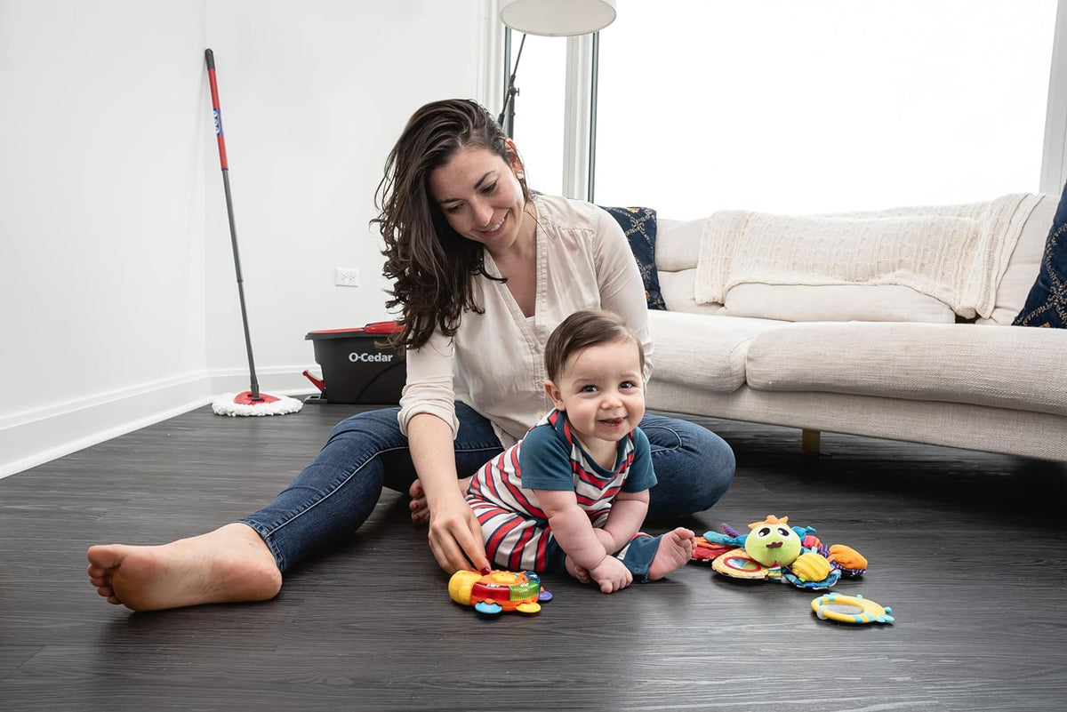 DEEP CLEANING MICROFIBER: O-Cedar's EasyWring Microfiber Spin Mop & Bucket Floor Cleaning System uses millions of strands of advanced microfiber to effectively capture dirt and grime with just plain water, eliminating the need for harsh chemicals. Safe for all hard flooring, including finished hardwood, wood, laminate, tile, vinyl and more.