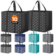 Make your shopping and outdoor trips eco-friendly and convenient with the Fab Totes 10-Pack reusable grocery bags. Each bag offers a spacious 35-liter capacity, perfect for carrying groceries, snacks, toys, clothes, and more. Crafted from durable non-woven cloth with a waterproof coating, these bags are easy to clean and built to last.