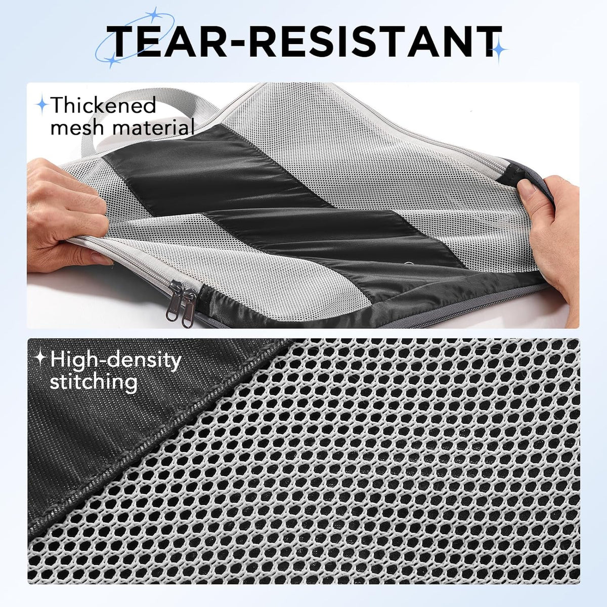 Ideal for organizing clothing, shoes, accessories, and toiletries during travel. Compress bulky items to fit more in your luggage. Suitable for business trips, vacations, backpacking, family travel, and more. Keep your suitcase tidy and find essentials quickly with mesh visibility. Bonus bags help separate dirty clothes and shoes from clean items.