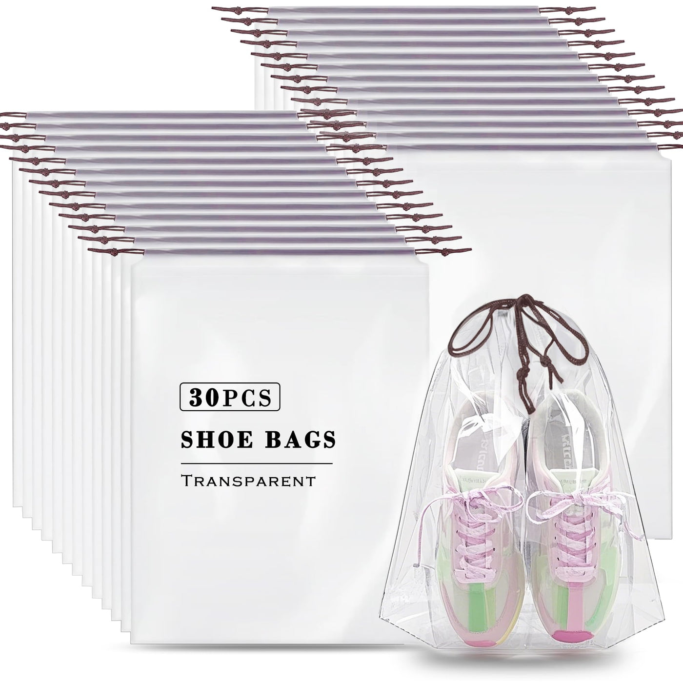 30 Pack Clear Shoe Bags for Travel – Waterproof Transparent Drawstring