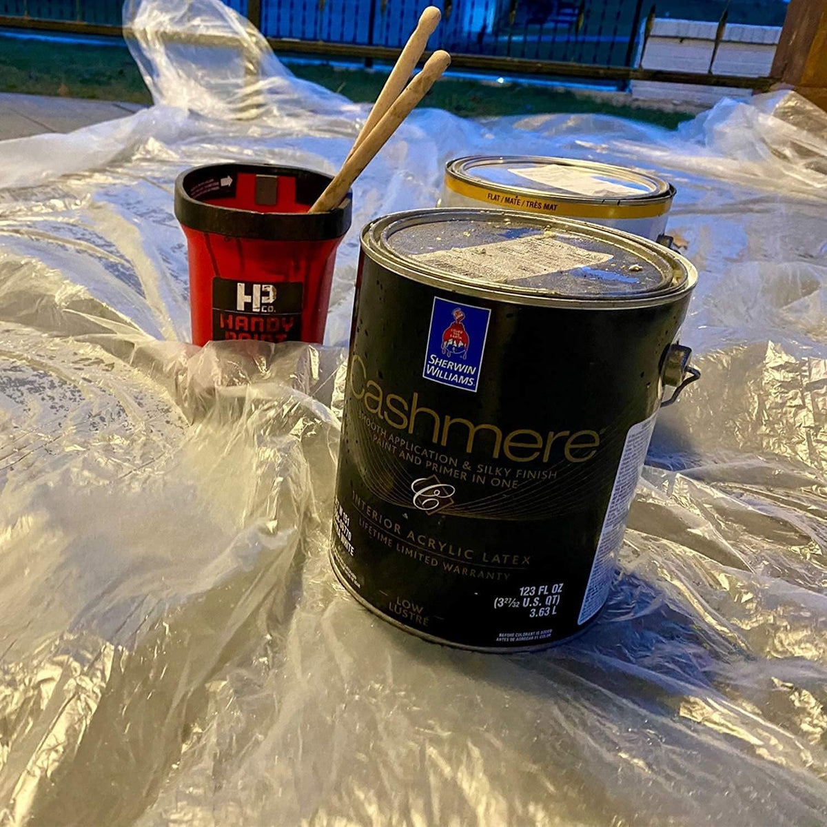 [No Leaking Guarantee]: It made of 100% premium polyethylene, which is very durable, odorless, and tear-proof. Plastic drop cloth can block the intrusion of water and paint, keeping furniture and carpets dry.