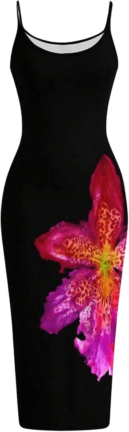 Step into effortless style with this Women’s Flower Print Spaghetti Strap Midi Dress. Made from a soft, slightly stretchy blend of polyester and elastane, this boho-inspired bodycon cami dress contours your figure while providing comfortable all-day wear. Featuring a vibrant floral print and delicate spaghetti straps, it’s the perfect choice for casual outings or elegant evening occasions.