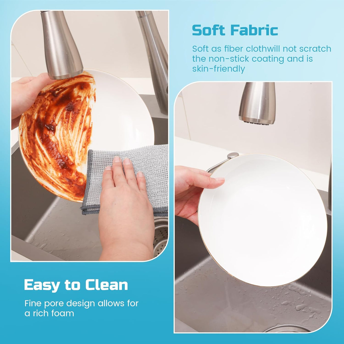 Eco-friendly and long-lasting: You'll receive 10 packs of finely crafted wire cleaning cloths, each dishrag measuring 7.08 inches by 8.86 inches , can withstand multiple wash cycles, maintain performance, and can be reused