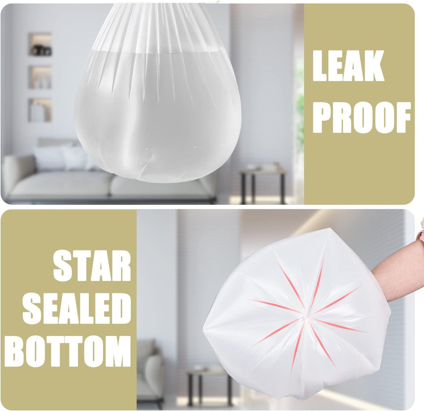 Practical Durability - The small garbage bags are sturdy enough to handle daily household waste unless sharp objects. Star seal bottom ensures strength and avoid leakage